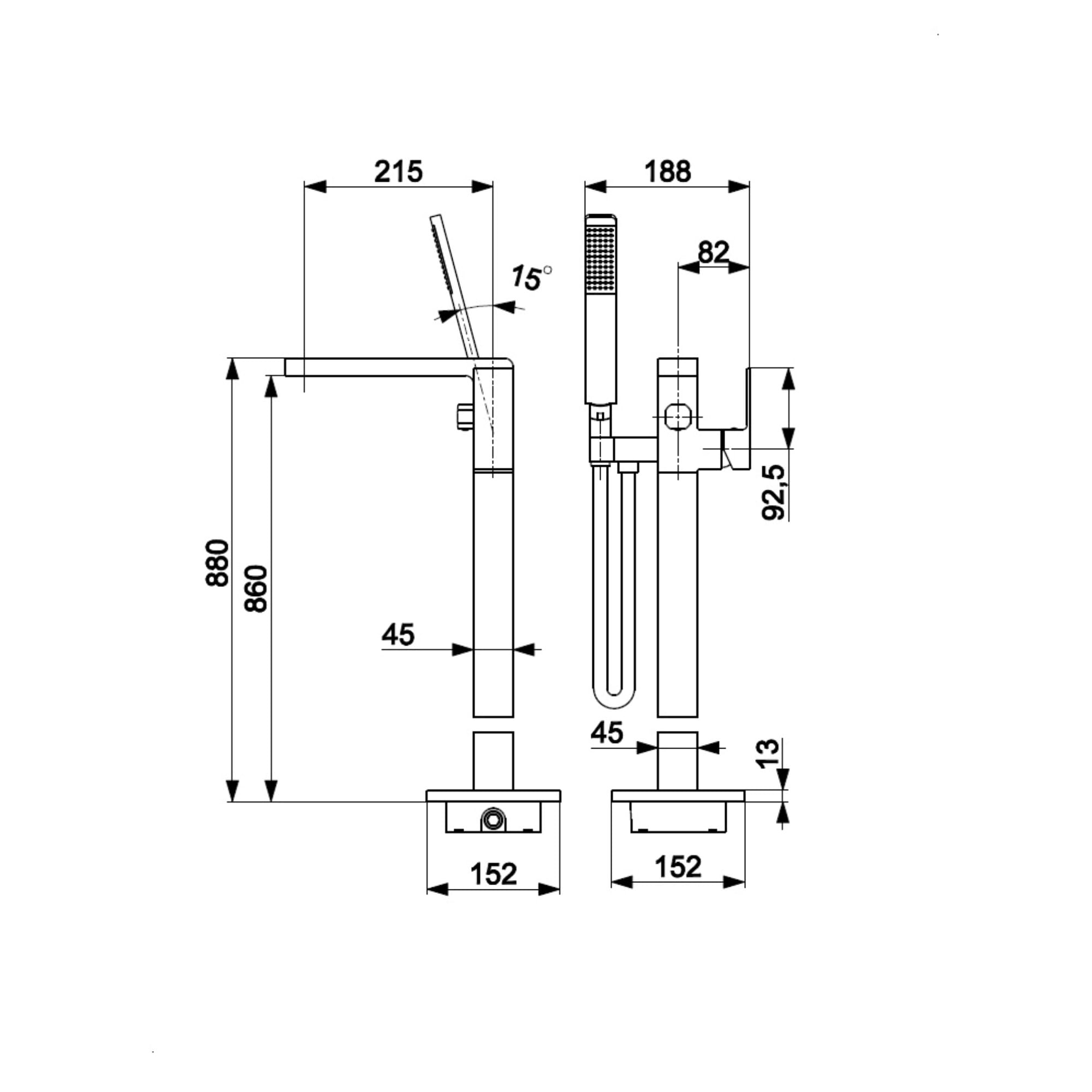 | Вид монтажа смесителя | Напольный |