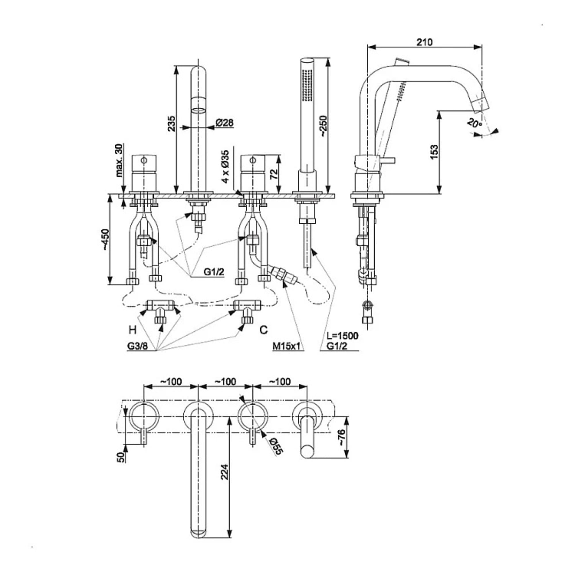 | Особенности смесителя | На 4 отверстия, С ручной лейкой |