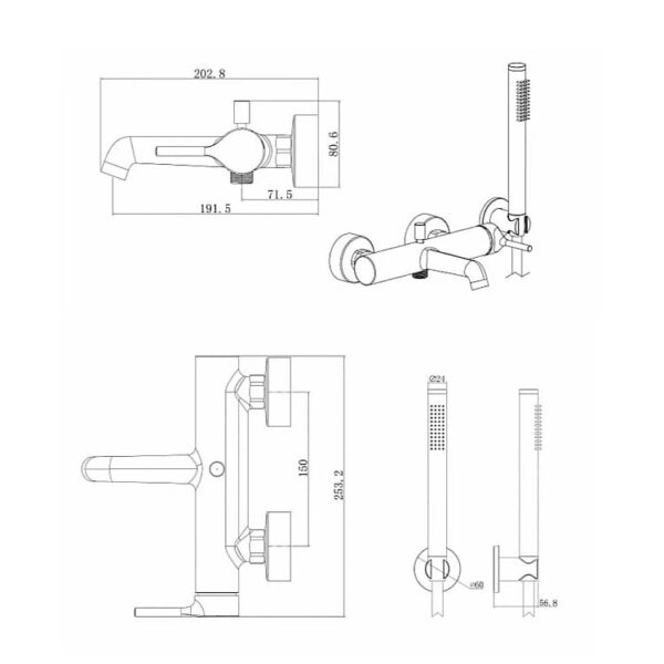 Комплектация | Лейка для ручного душа, Держатель для ручного душа, Душевой шланг, Смеситель для ванны |