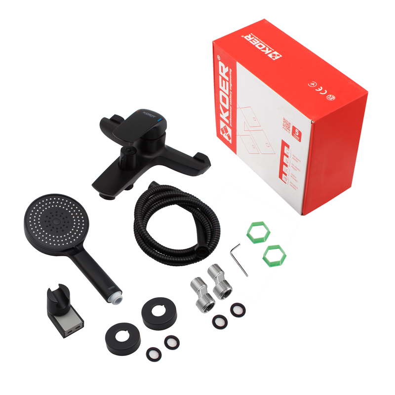 Смеситель для ванны Koer KB-40008-05 однорычажный, черный матовый + ручная лейка (KR3473)
