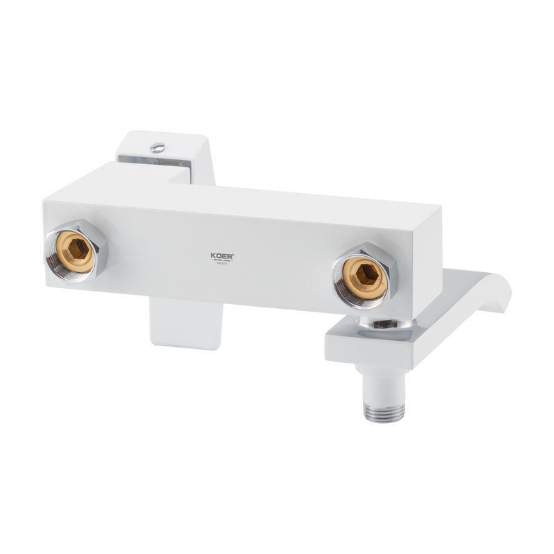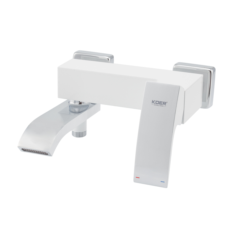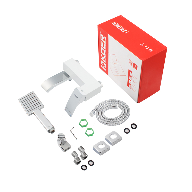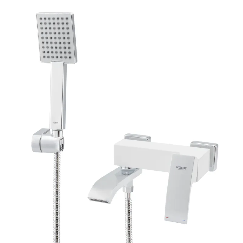 Смеситель для ванны Koer KB-41007-04 однорычажный, белый матовый + ручная лейка (KR5157)