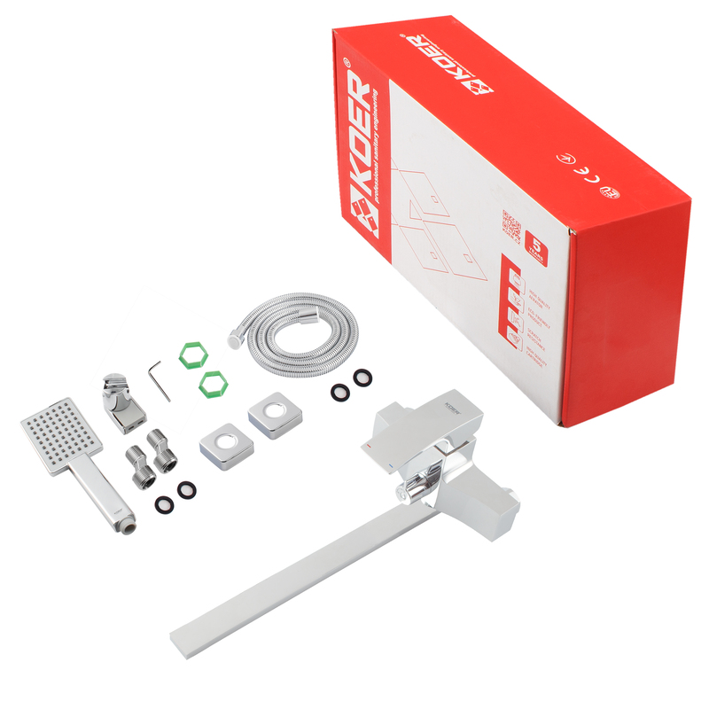 Смеситель для ванны Koer KB-42007-01 однорычажный, хром + ручная лейка (KR3456)