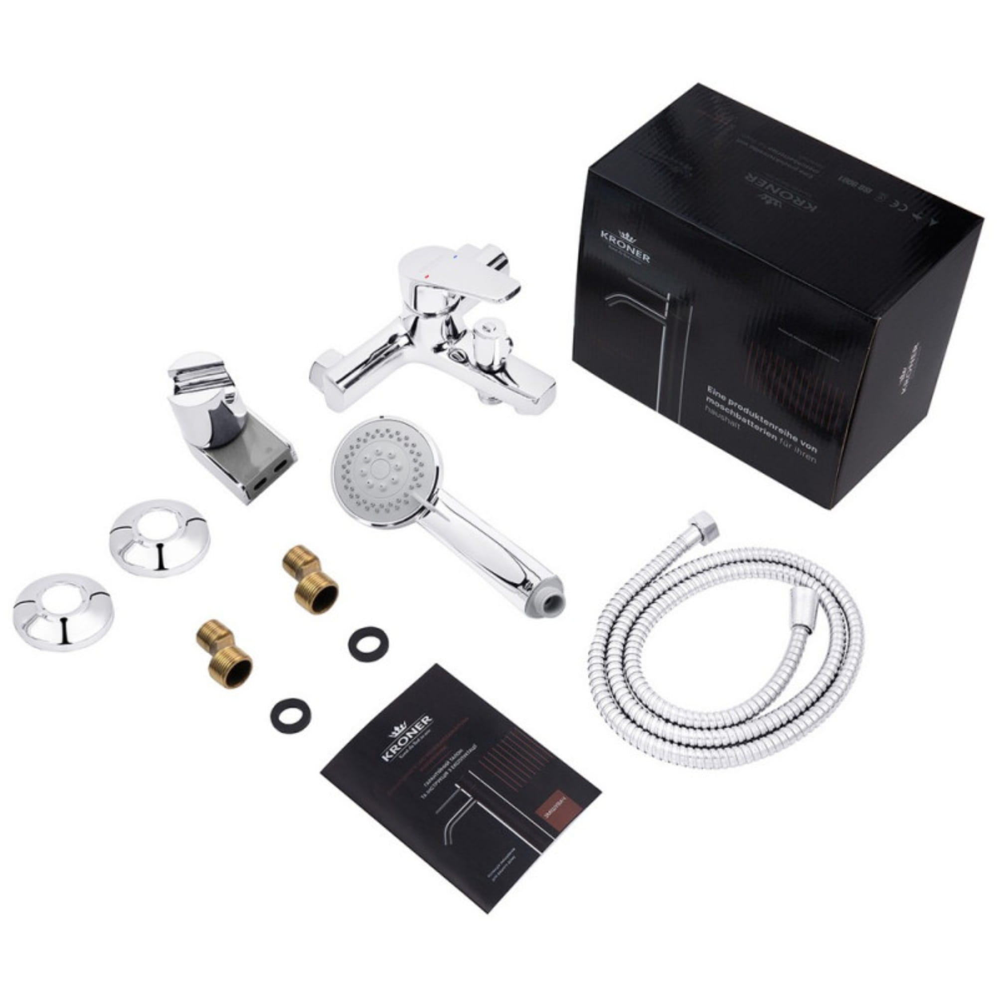 Смеситель для ванны Kroner KRM Brocken C060 однорычажный, хром + ручная лейка (CV023595)