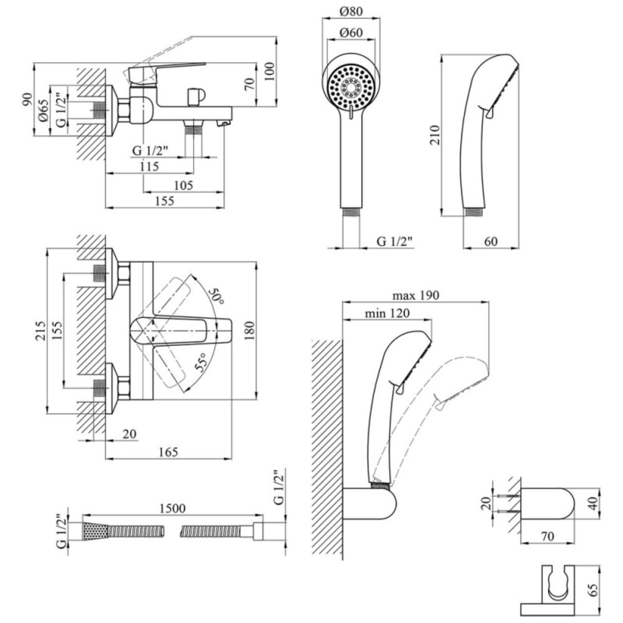 | Диаметр ручной лейки | 80 |
