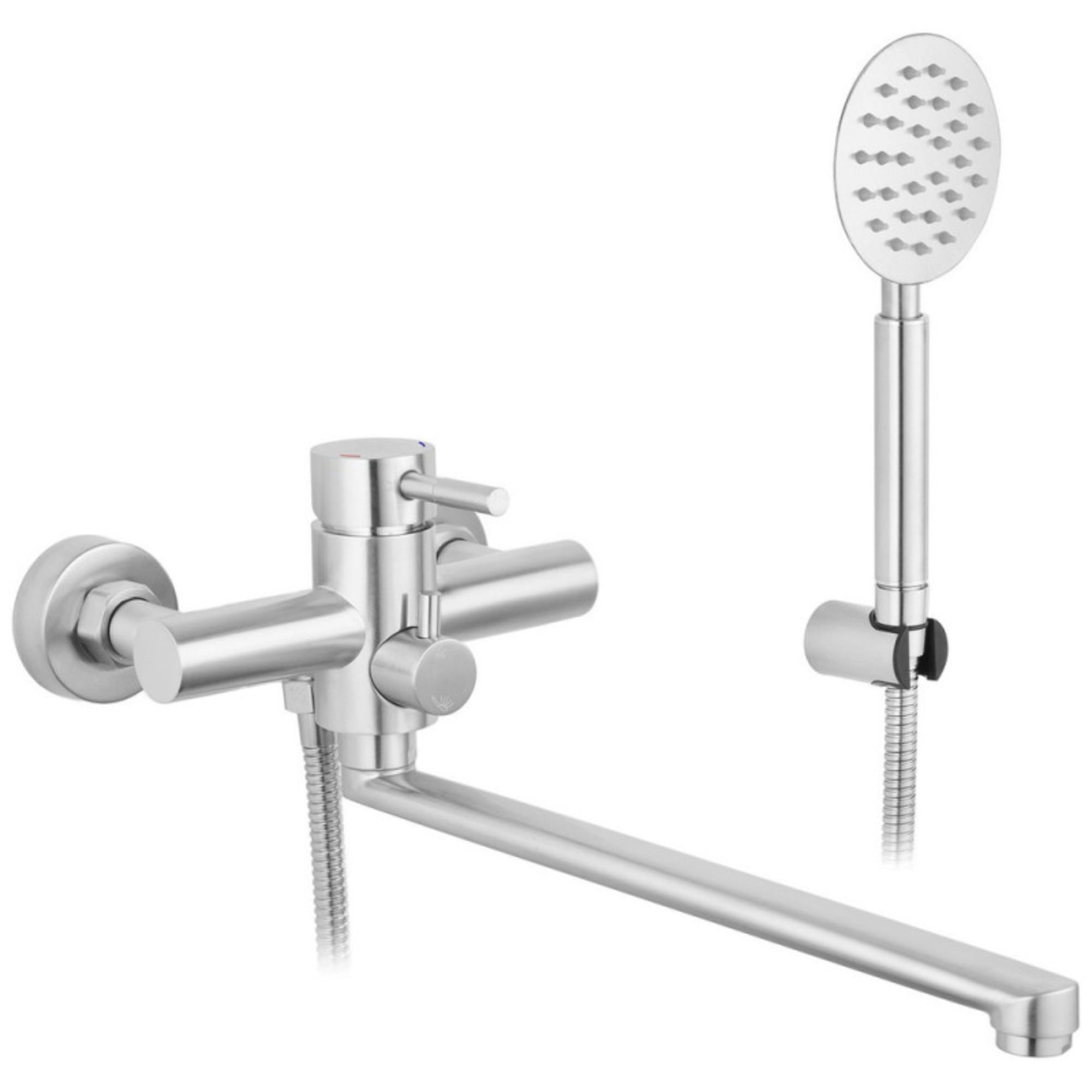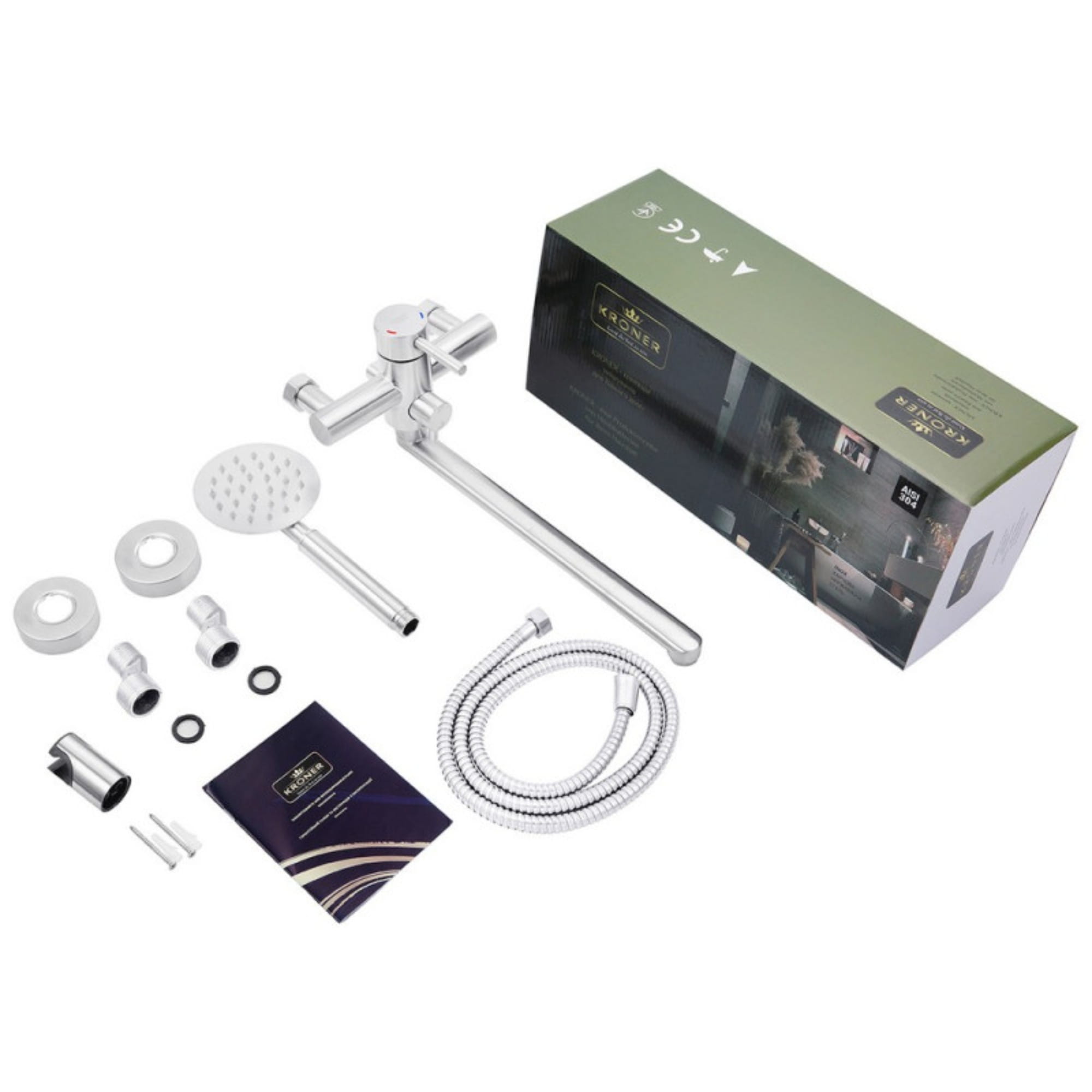 Смеситель для ванны Kroner KRP Edelstahl Klassisch ESG070 однорычажный, никель + ручная лейка (CV022997)