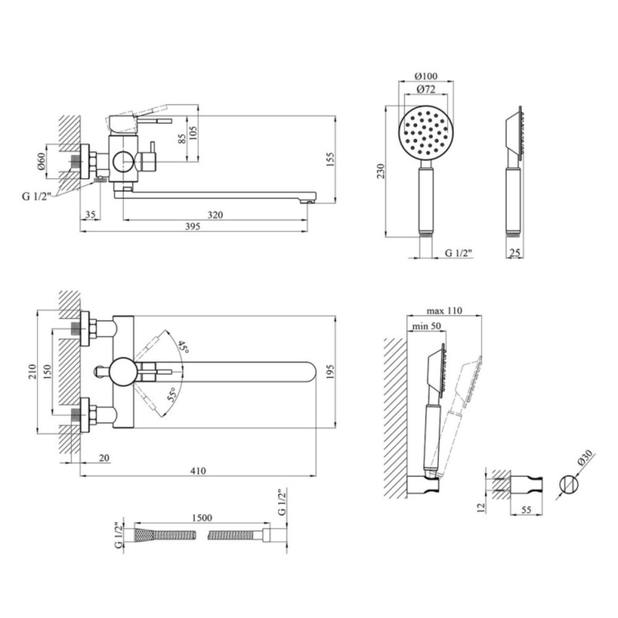 | Диаметр ручной лейки | 100 |