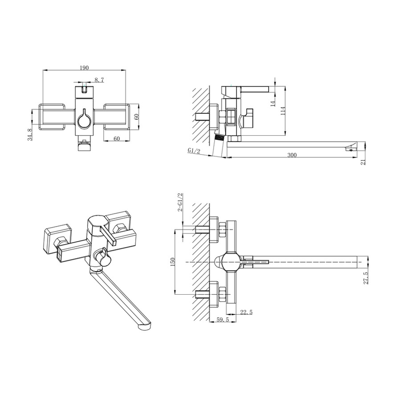 | Вид монтажа смесителя | Настенный |
