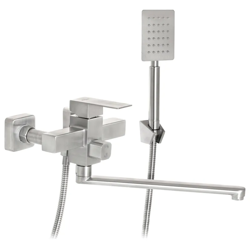 Смеситель для ванны Mixxus KUB-006 однорычажный, нержавеющая сталь + ручная лейка (SS2809)