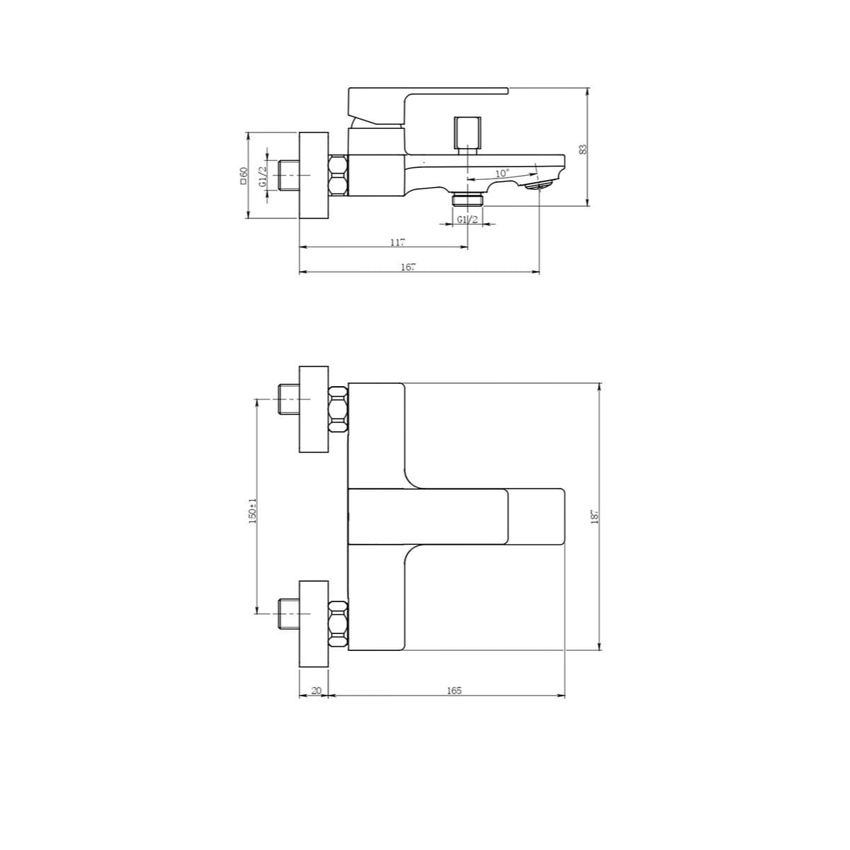 Смеситель для ванны PERLA Robin настенный, латунь, черный (PBZ6204В)