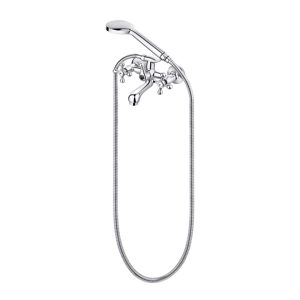 Смеситель для ванны PERLA Valencia настенный, латунь хромированная + ручная лейка (PSH1304)