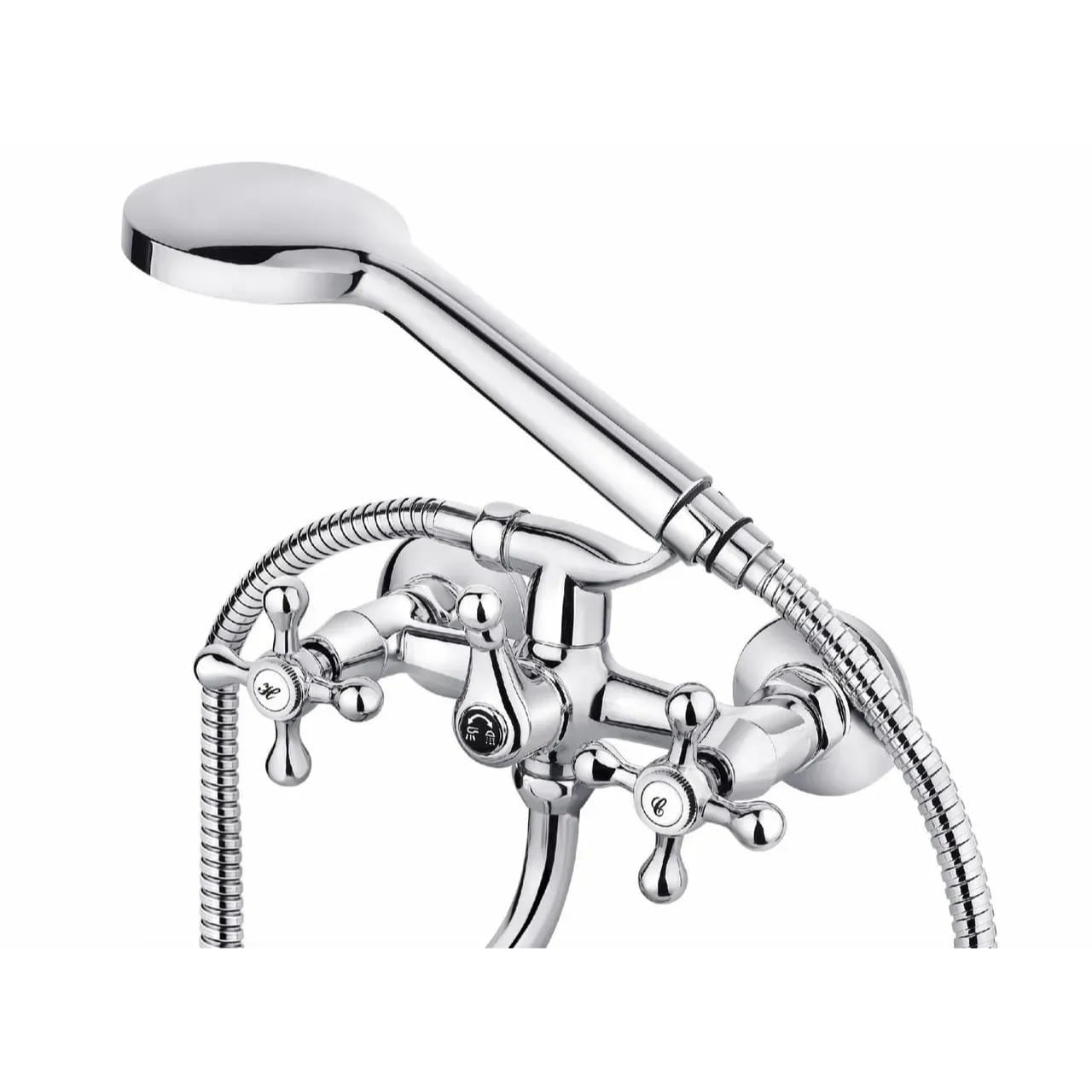 Смеситель для ванны PERLA Valencia настенный, латунь хромированная + ручная лейка (PSH13049)