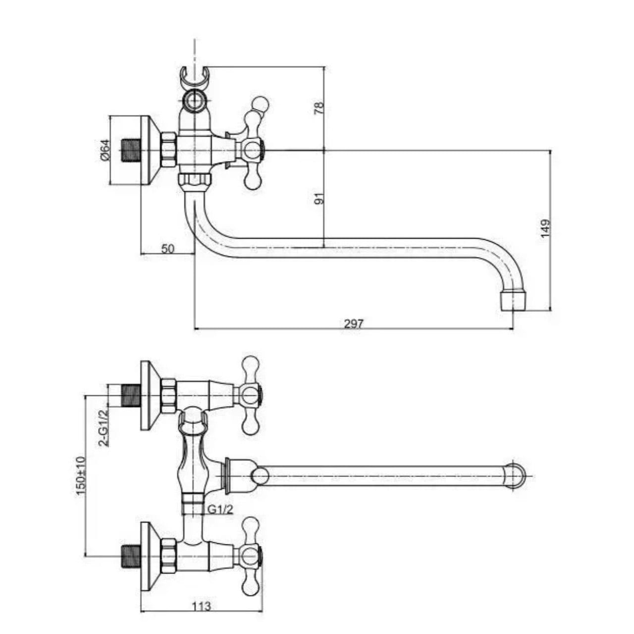 | Вид монтажа смесителя | Настенный |