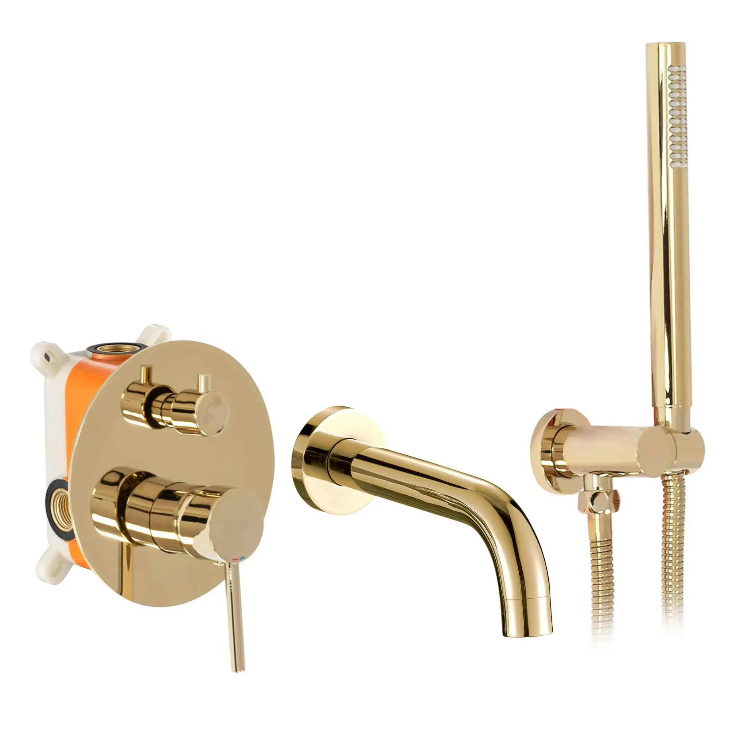 | Комплектация | Лейка для ручного душа, Душевой шланг, Излив, Монтажный бокс, Смеситель для ванны |