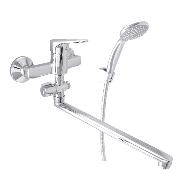 Смеситель для ванны Rubineta Luka 12 C настенный, хром + ручная лейка (LU2CK08)
