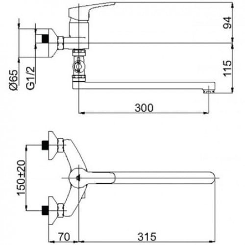 | Вид монтажа смесителя | Настенный |