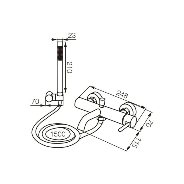 Смеситель для ванны VBI Milano с ручной лейкой, черный матовый (VBI-050106BL)