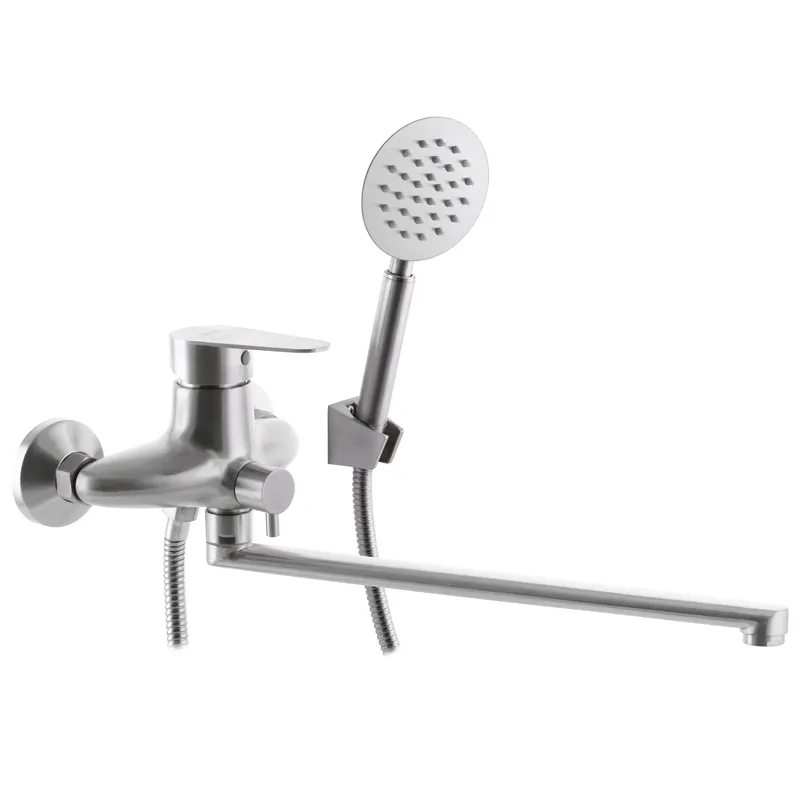 Смеситель для ванны Zerix ASA-006 однорычажный, нержавеющая сталь + ручная лейка (ZX3159)