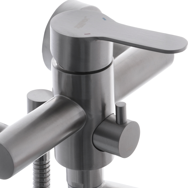 Смеситель для ванны Zerix DAX-006 однорычажный, нержавеющая сталь + ручная лейка (ZX3150)