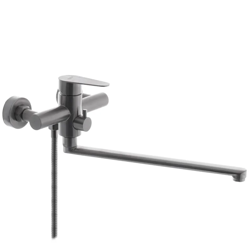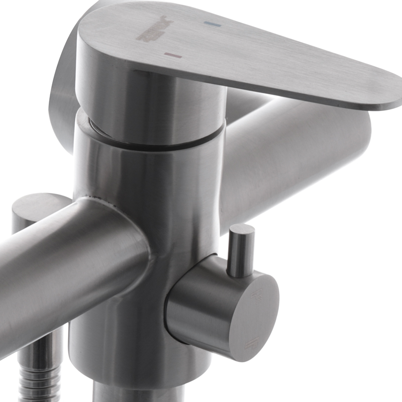 Смеситель для ванны Zerix Fox-006 однорычажный, нержавеющая сталь + ручная лейка (ZX3151)