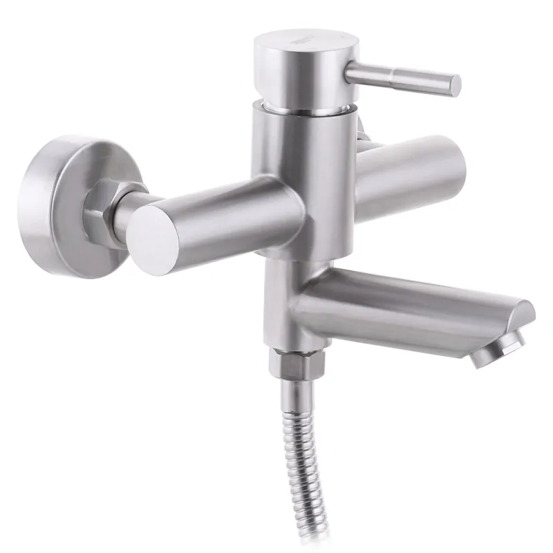 Смеситель для ванны Zerix SUS-009 однорычажный, нержавеющая сталь + ручная лейка (ZX3144)