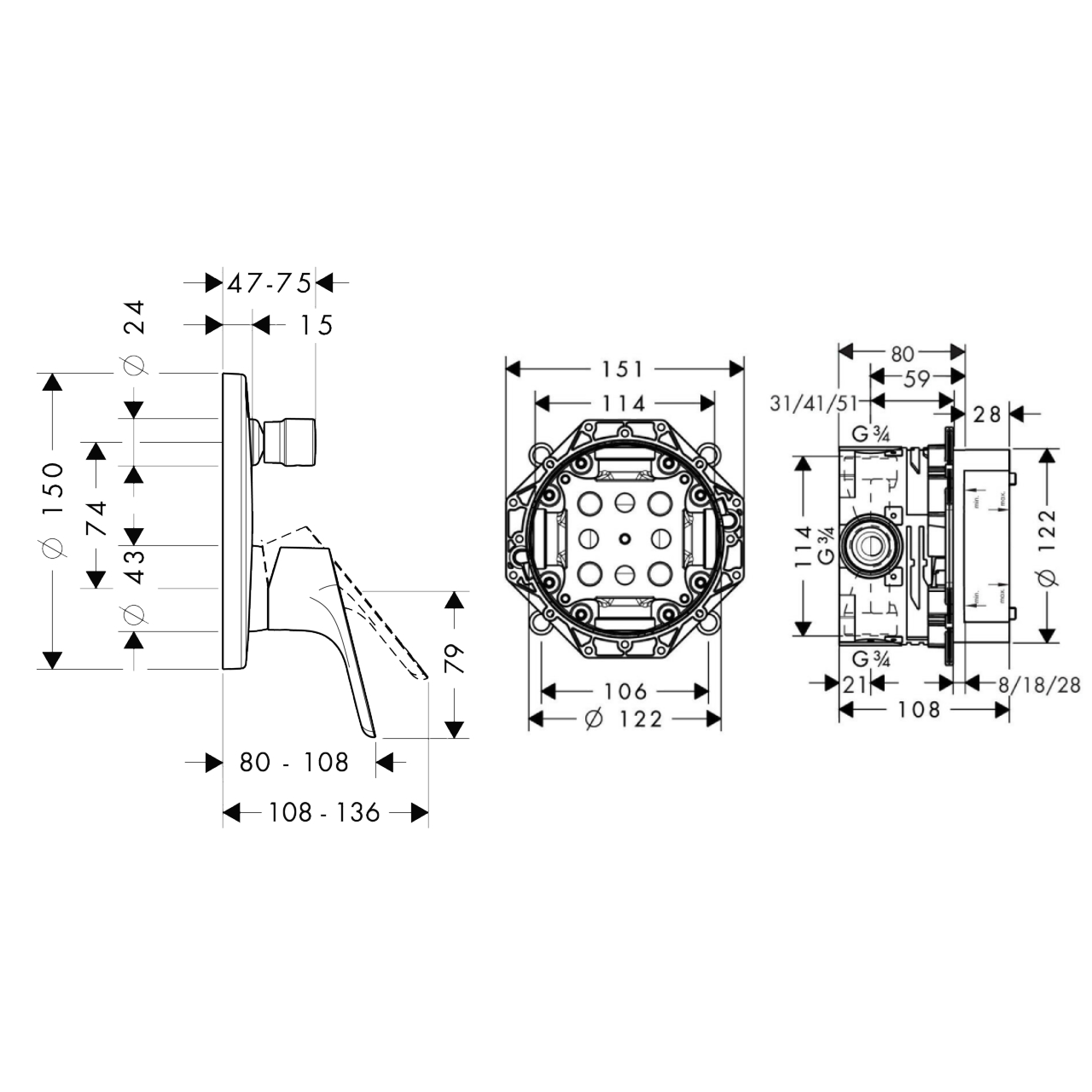Смеситель скрытого монтажа Hansgrohe Focus однорычажный, хром + IBOX universal (31945000+01800180)