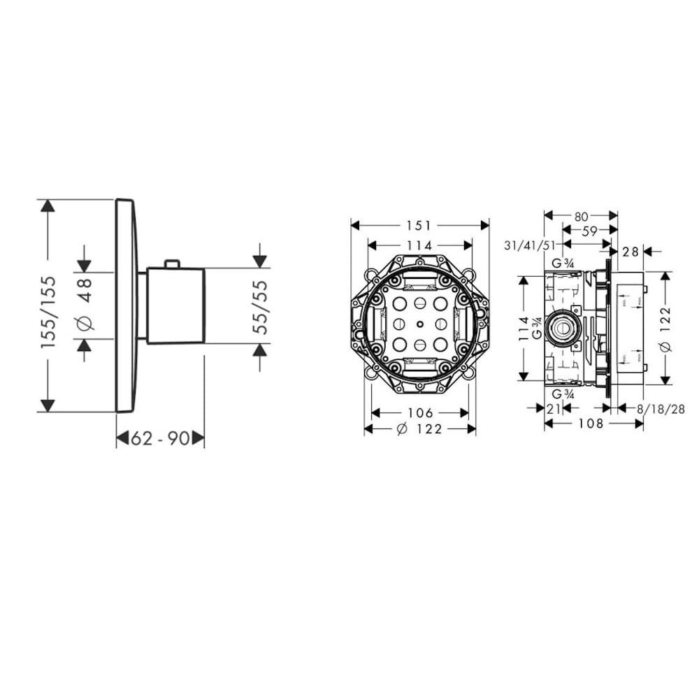 Смеситель скрытого монтажа Hansgrohe Puravida термостатический, хром+IBOX universal (15770400+01800180)