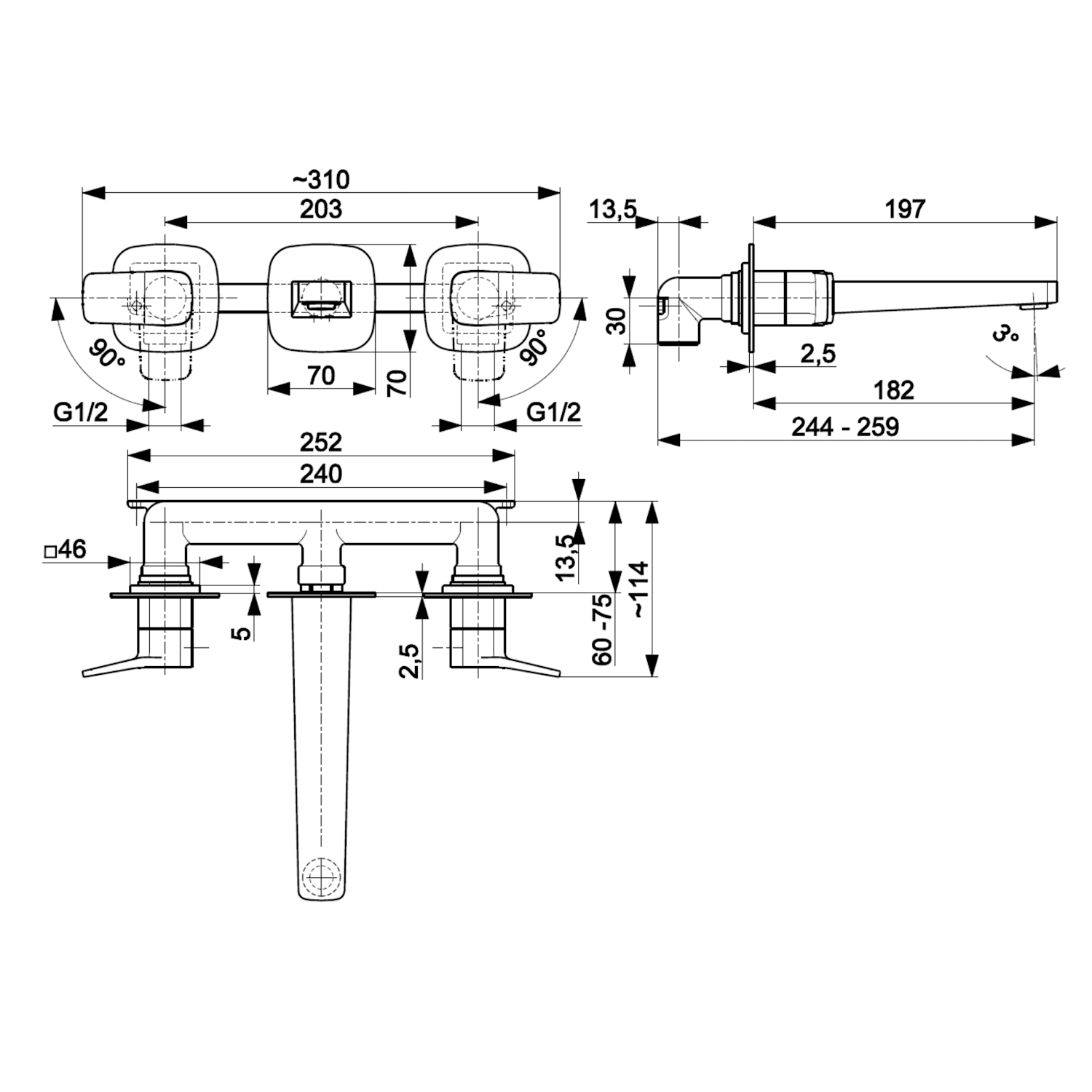 | Особенности смесителя | На 3 отверстия, Со встроенной частью |