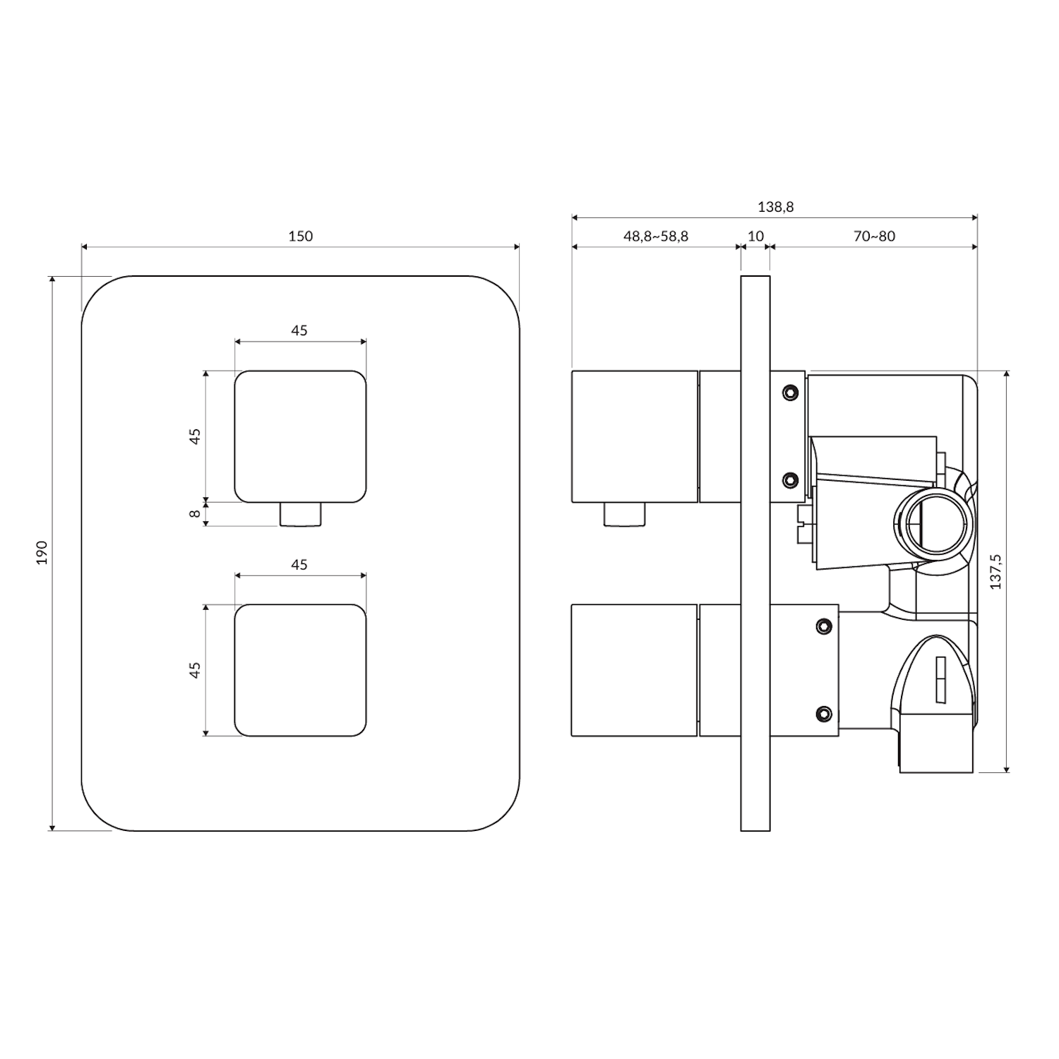 | Комплектация | Смеситель скрытого монтажа, Элемент скрытого монтажа |