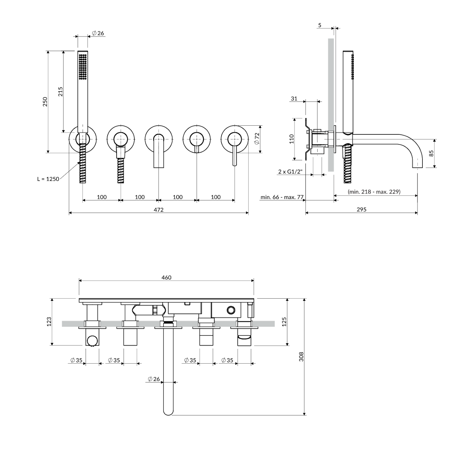 | Особенности смесителя | На 5 отверстий, С ручной лейкой |