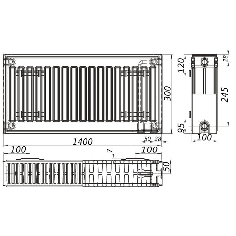 | Ширина радиатора, мм | 1400 |