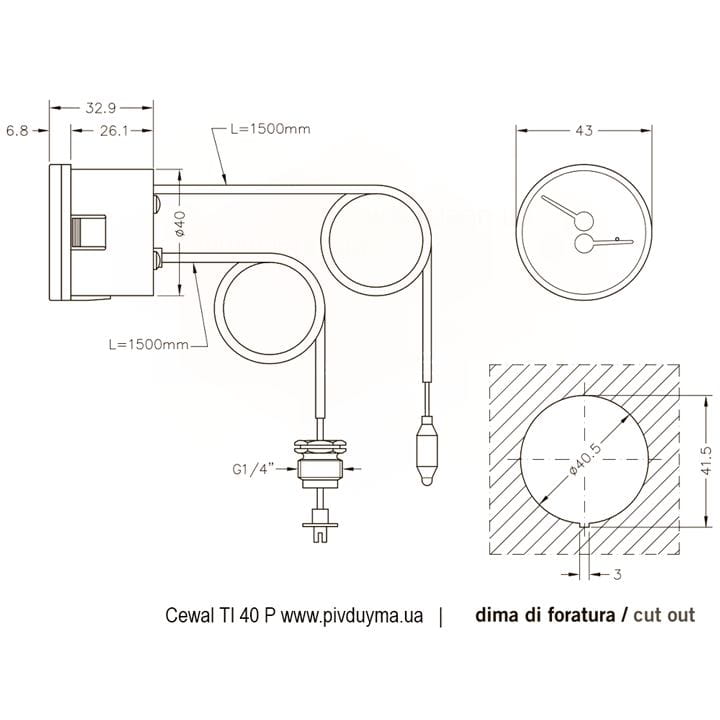 Термоманометр капиллярный Cewal TI 40 P биметаллический 4 бар 120°C (91392102)