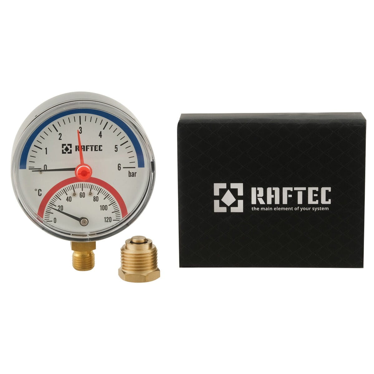 Термоманометр радиальный Raftec биметаллический 1/2″ 6 бар 120°C