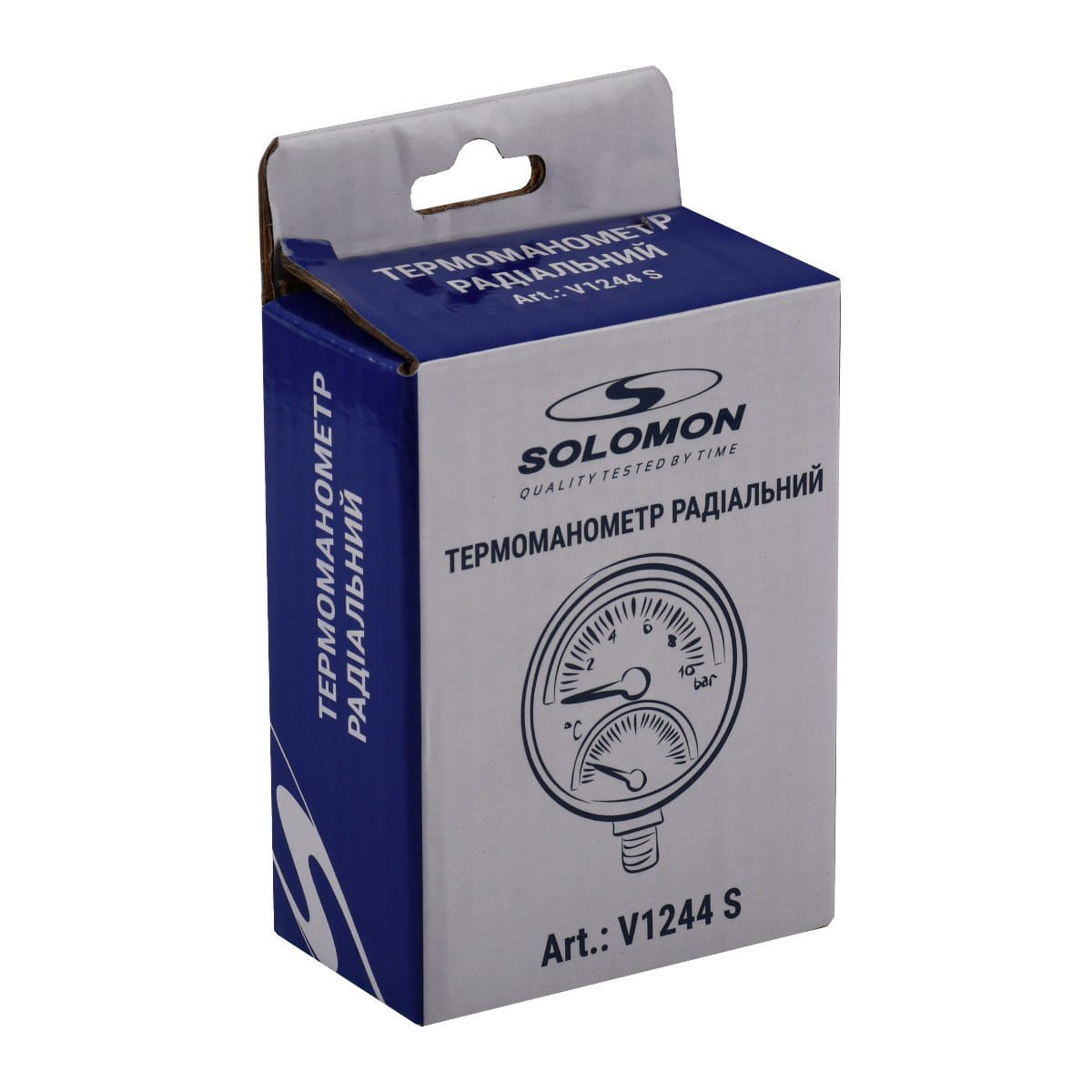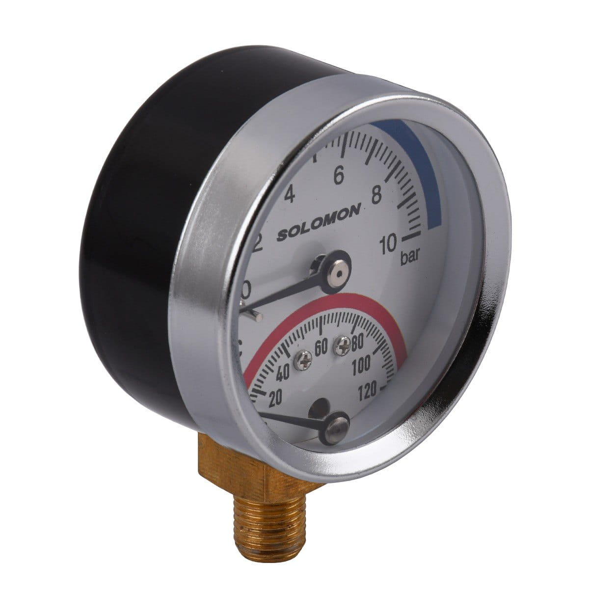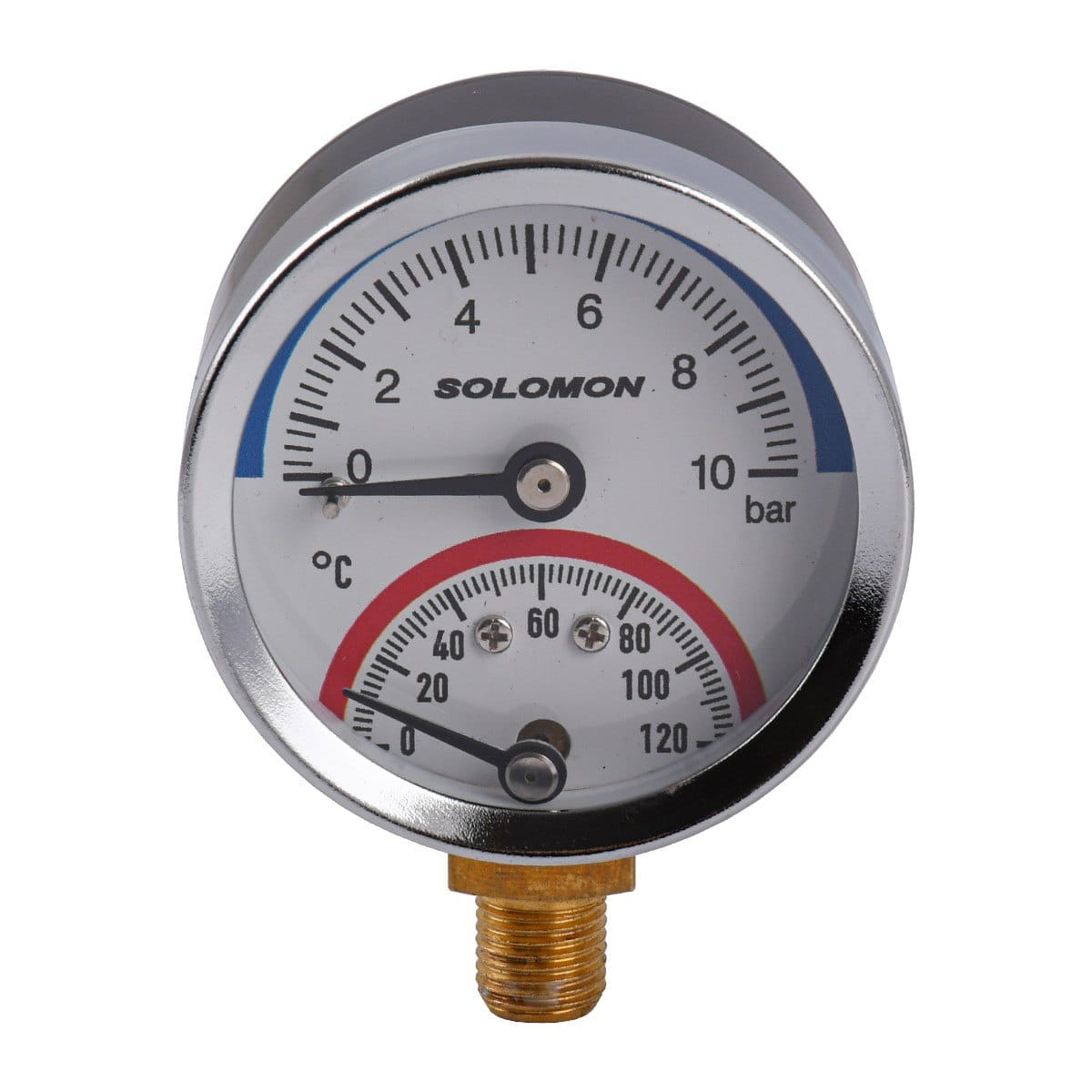 Термоманометр радиальный Solomon V1244 S биметаллический 3/8″ 10 бар 120°C
