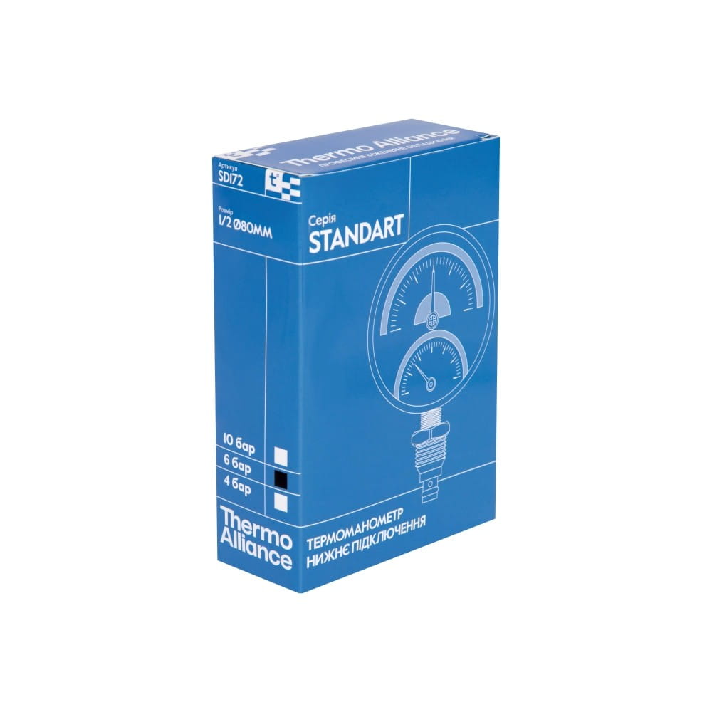 Термоманометр радиальный Thermo Alliance Standart биметаллический 1/2″ 6 бар 120°C (SD1726B)