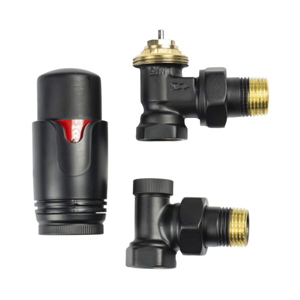 Термостатический комплект Warm Well 1/2″ ВН угловой, черный матовый
