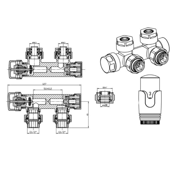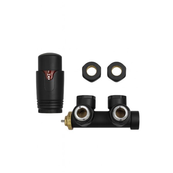 Термостатический комплект Warm Well 1/2″ ВН угловой, черный матовый