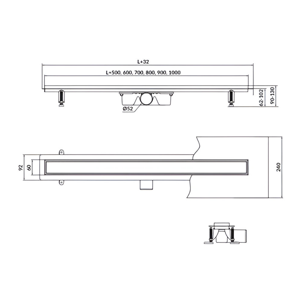 | Комплектация | Трап, Монтажный комплект, Ножки, Сифон |