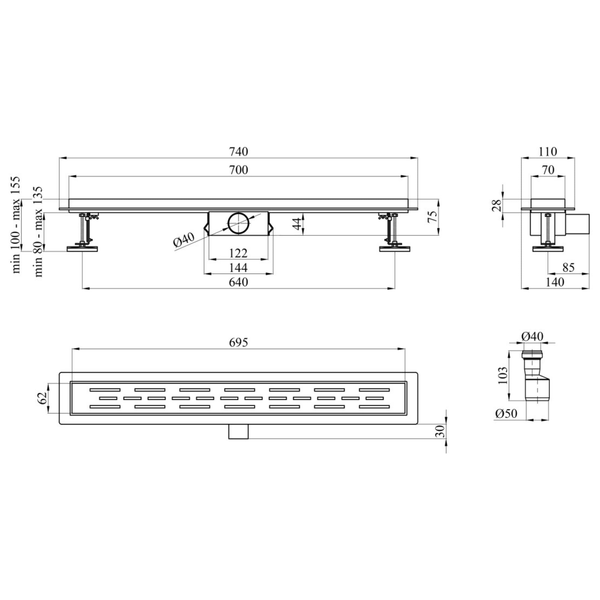 Трап для душа Kroner KRP Eifel L70 Linien 740 мм нержавеющая сталь, серый (CV034169)