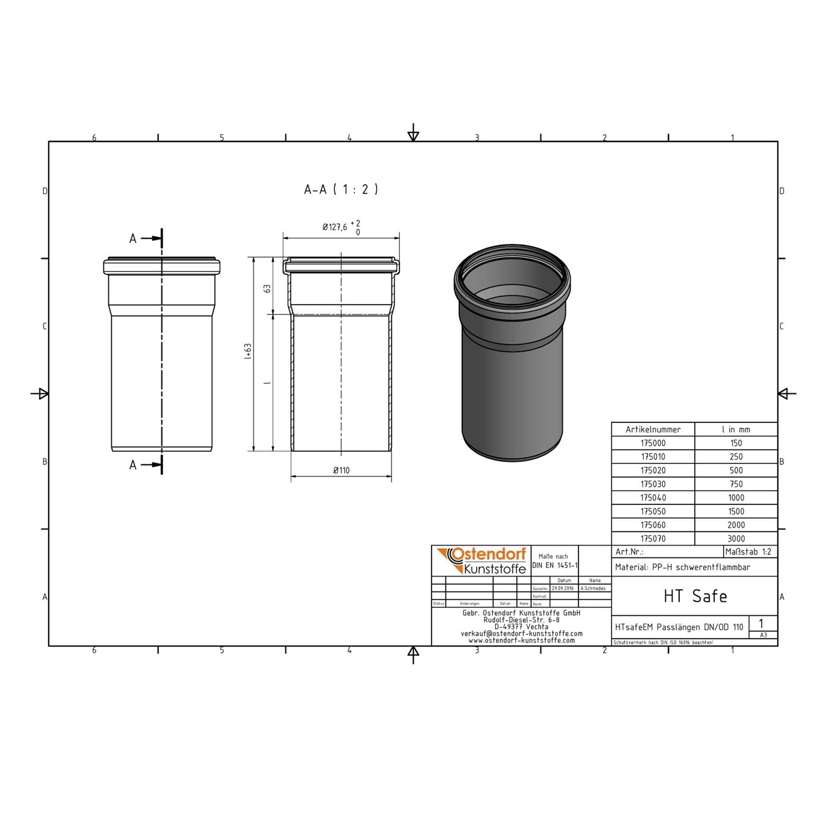 Труба канализационная Ostendorf HT Safe 110×250мм внутренняя (175010-05)