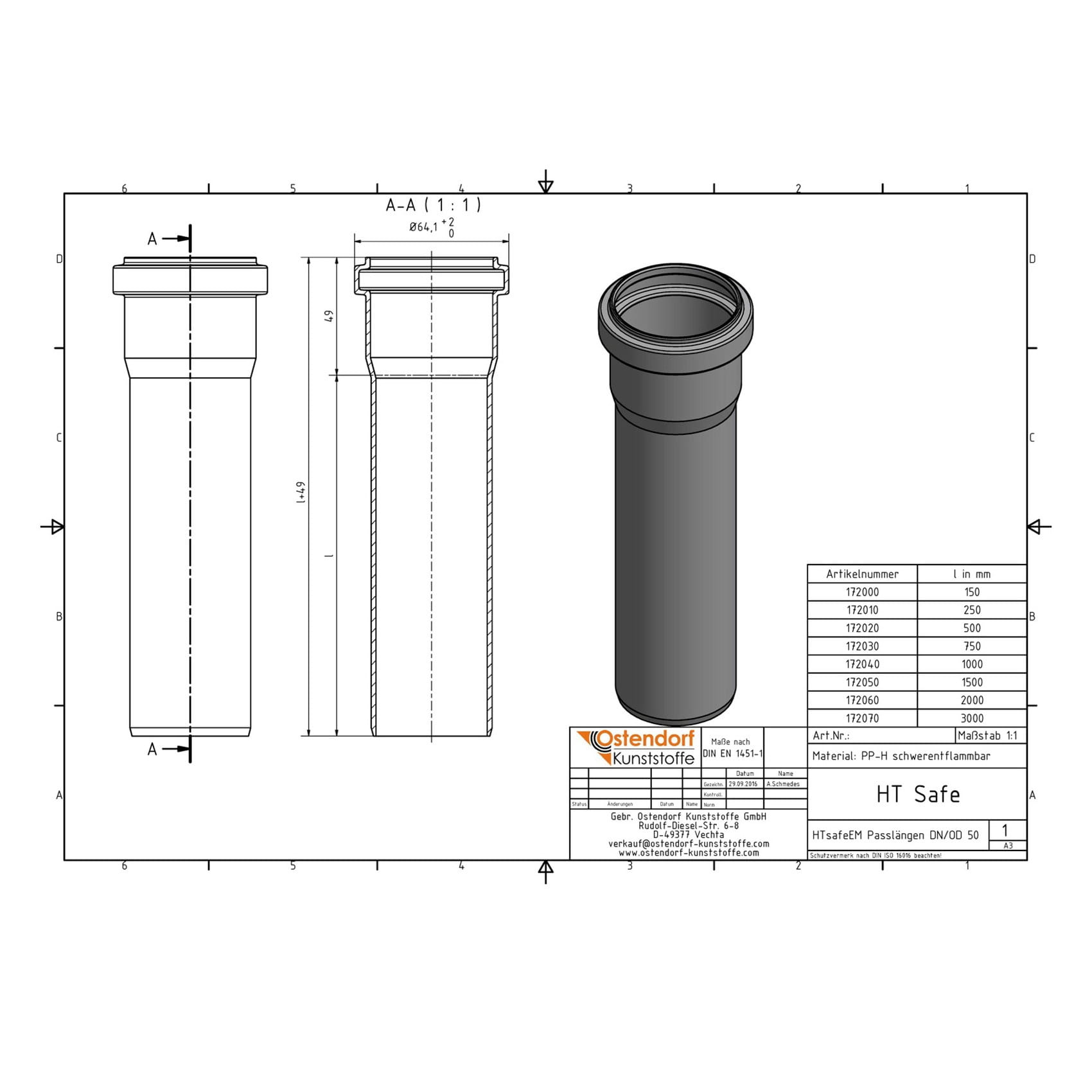 Труба канализационная Ostendorf HT Safe 50×2000мм внутренняя (172060)
