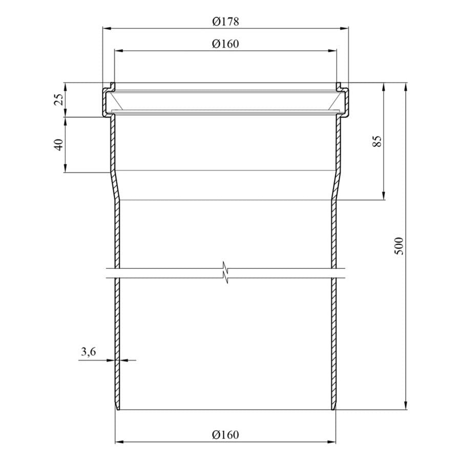 | Дополнительные характеристики | Габарити виробу (ВхШхГ), мм: 500х178х178, Комплектация: Труба, уплотнительное резиновое кольцо |