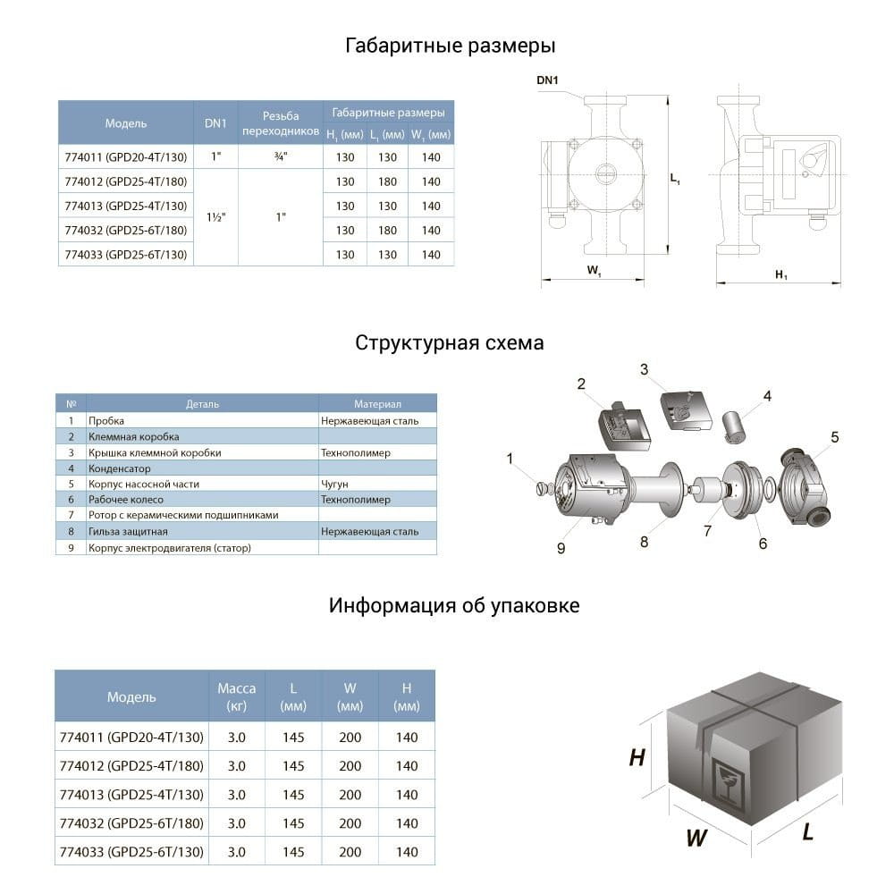 | Тип насоса | Циркуляционный, Энергосберегающий |