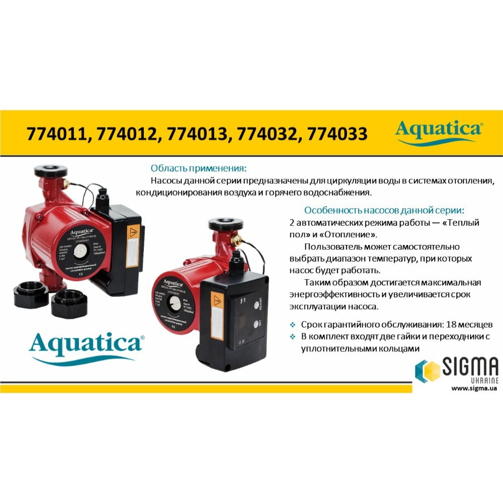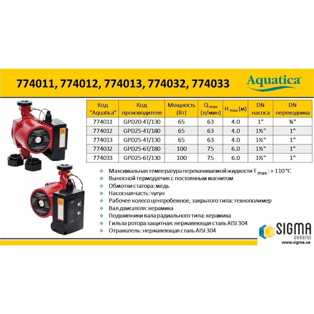 Циркуляционный насос Aquatica 65 Вт H 4 м Q 63 л/мин электронный, электронный (774011)