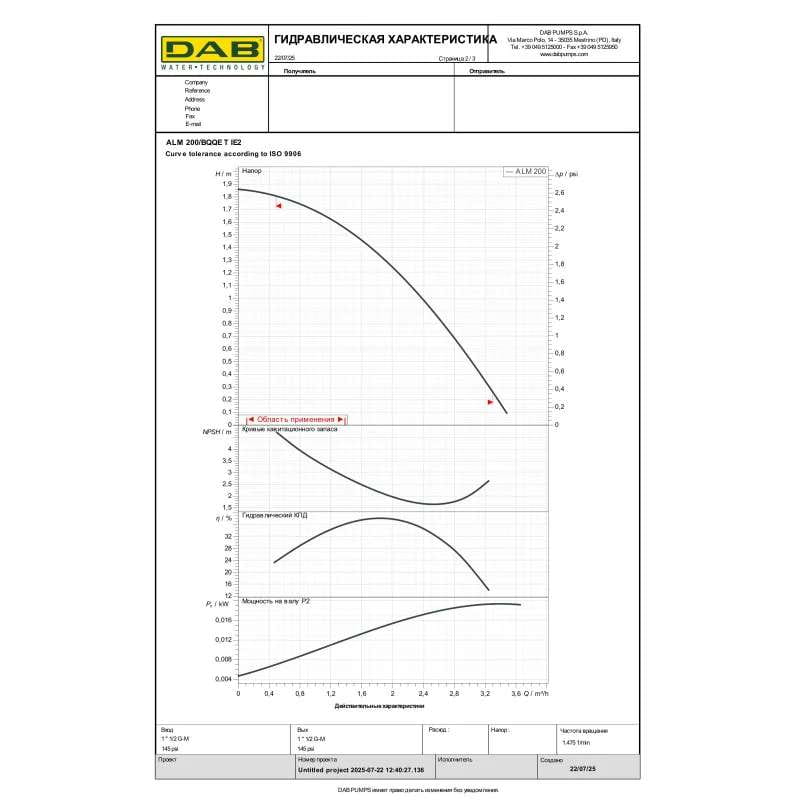 Циркуляционный насос ин-лайн DAB ALM 200 T 59 Вт H 2 м Q 58 л/мин механический (60214694)
