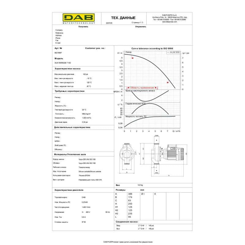Циркуляционный насос ин-лайн DAB ALM 500 T 250 Вт H 5 м Q 138 л/мин механический (60214697)