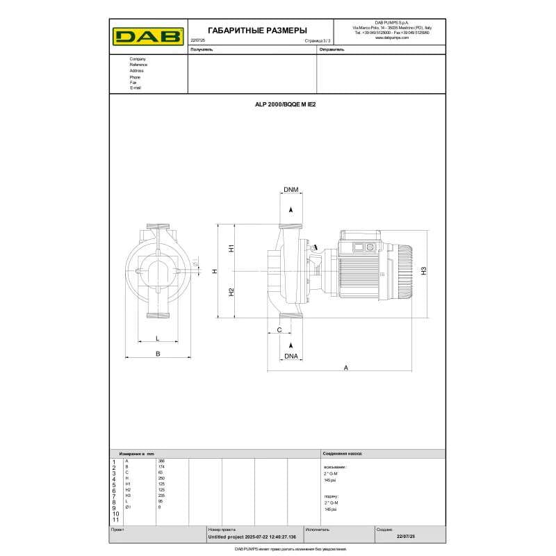 Циркуляционный насос ин-лайн DAB ALP 2000 M 750 Вт H 21 м Q 156 л/мин механический (60212472)