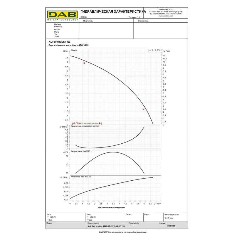 | Сфера применения насоса | Для перекачки чистой воды, ГВС/ХВС/отопление |