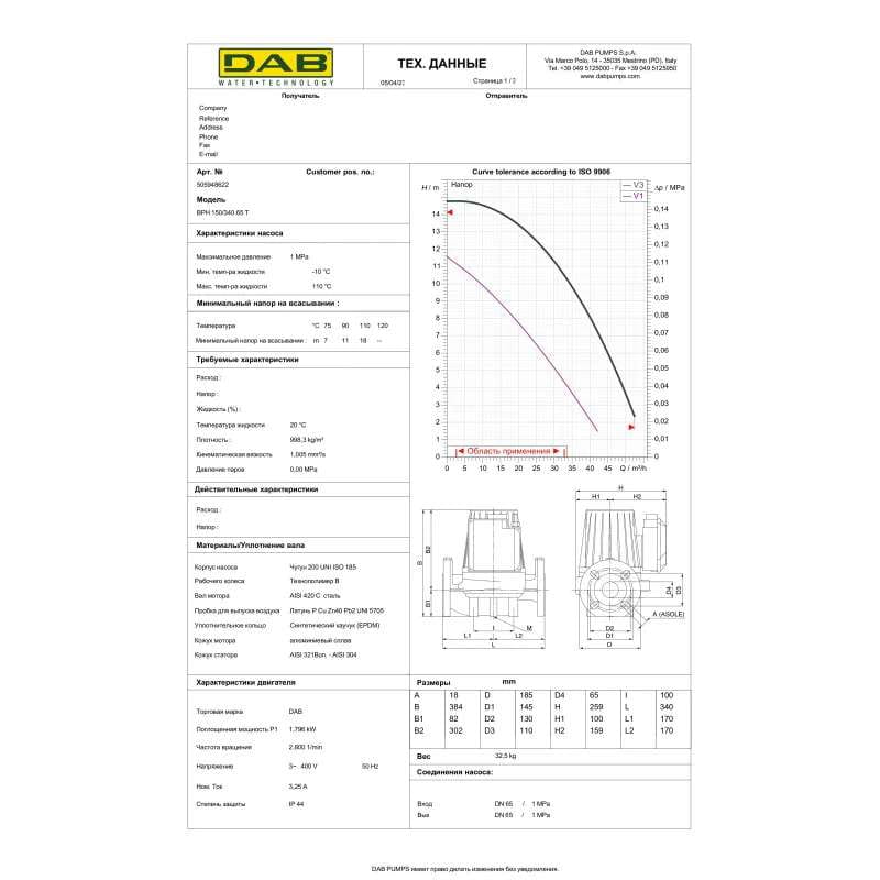 | Сфера применения насоса | Для перекачки чистой воды, ГВС/ХВС/отопление |