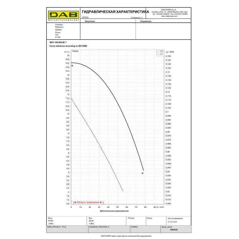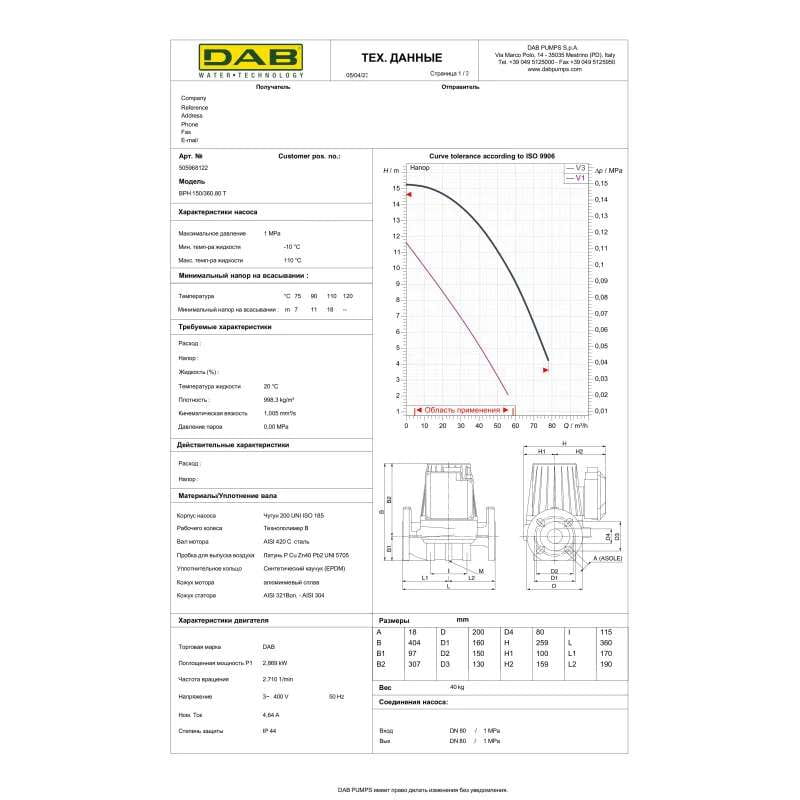 Циркуляционный насос ин-лайн DAB BPH 150/360.80T 2869 Вт H 15 м Q 1300 л/мин механический (505968122)