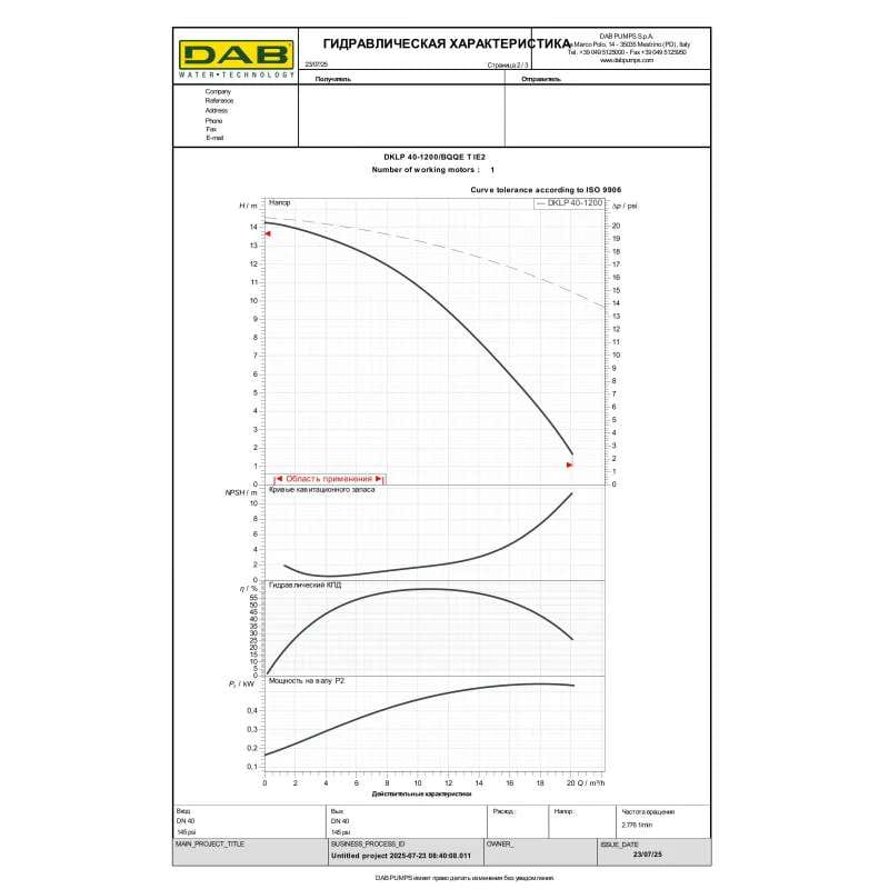 Циркуляционный насос ин-лайн DAB DKLP 40-1200/BQQE T 540 Вт H 14 м Q 335 л/мин механический (60214767)